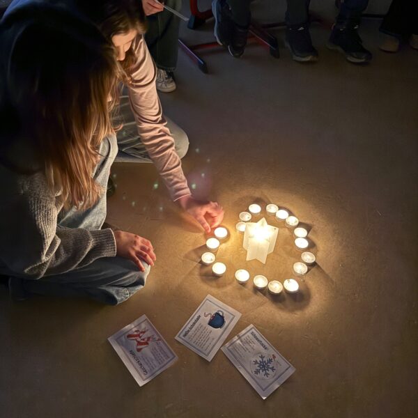 In der dritten Adventswoche drehte sich alles um das Thema Licht. Zu Beginn halfen winterliche Atemübungen dabei, zur Ruhe zu kommen und bewusst im Moment anzukommen. Unter der Frage „Wie kann ich in der Welt ein Licht sein?“wurde anschließend darüber nachgedacht, wie groß die Dunkelheit in der Welt manchmal erscheint – durch Sorgen, Konflikte oder persönliche Probleme. Gleichzeitig wurde deutlich: Schon kleine Gesten können Licht ins Dunkel bringen. Ein freundliches Lächeln, ein aufmerksames Wort oder ein Telefonat mit einer guten Freundin können Hoffnung schenken und Wärme weitergeben. Als Erinnerung erhielten die Schülerinnen und Schüler ein Teelicht, das symbolisch dafür steht, dass bereits eine kleine Flamme einen Unterschied machen kann.