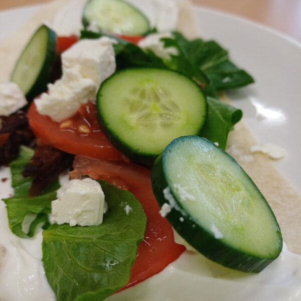 Um Alternativen aufzuzeigen, entwickelten die Schüler einen vegetarischen „Klima-Döner“. Als Fleischersatz dienten lecker gewürzte und gebackene Austernpilze, die dem traditionellen Döner geschmacklich und optisch sehr nahekamen.