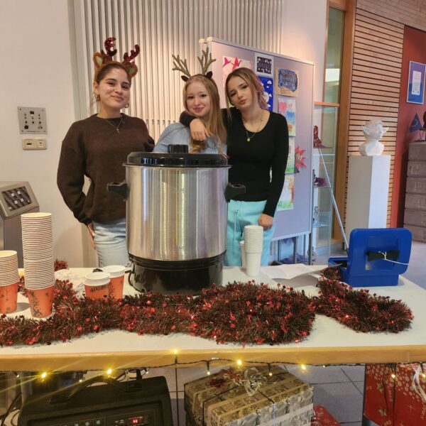 Am 17. Dezember lud das SMV-Helferteam in den beiden Pausen zur diesjährigen Weihnachtsaktion ein. Bei Songs wie „Last Christmas“, „Jingle Bells“ oder „Mistletoe“ sowie warmem Punsch kam schnell weihnachtliche Stimmung auf. Auch bei dieser Aktion brachten viele Schülerinnen und Schüler wie schon in der vergangenen Woche der Umwelt zuliebe ihre eigenen Tassen mit.