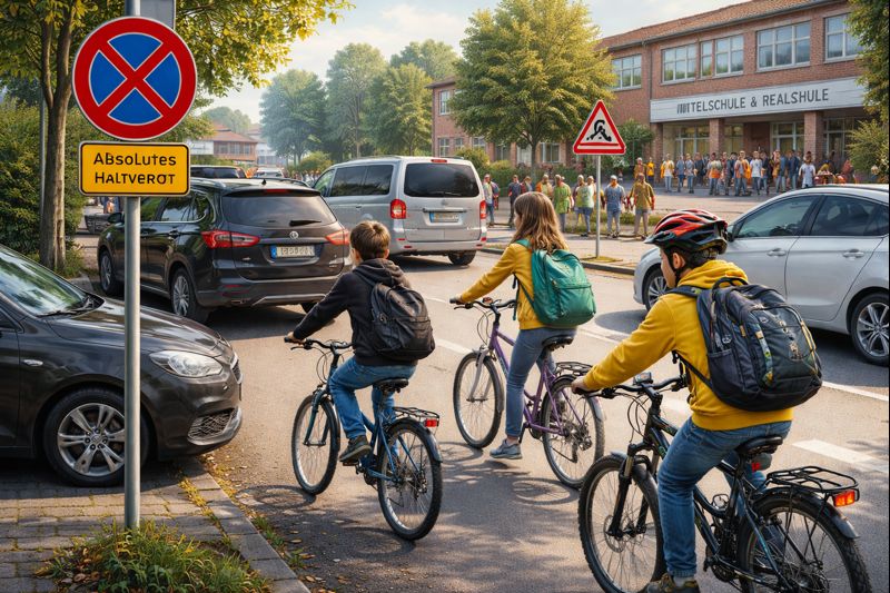 Sicher zur Schule zu kommen – zu Fuß, mit dem Fahrrad oder mit dem Auto – ist ein zentrales Anliegen der Schulen am Schulberg in Bad Neustadt a. d. Saale. Doch gerade in den Morgenstunden kommt es im Umfeld der Mittelschule und Realschule immer wieder zu unübersichtlichen und gefährlichen Verkehrssituationen. Besonders das Halten im absoluten Halteverbot oder in Feuerwehrzufahrten stellt ein erhebliches Sicherheitsrisiko für Schülerinnen und Schüler dar.